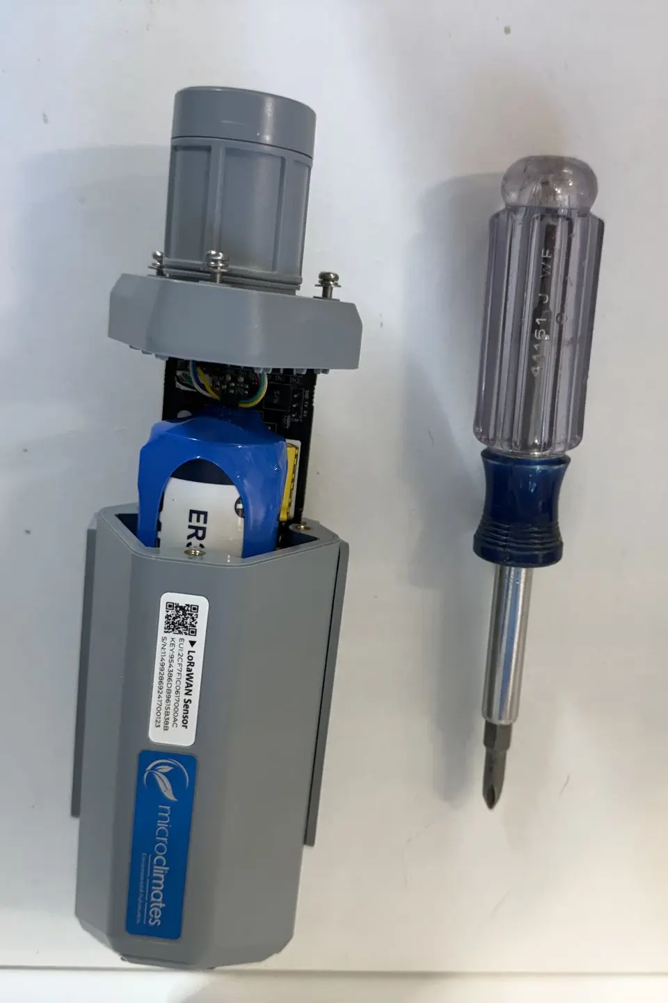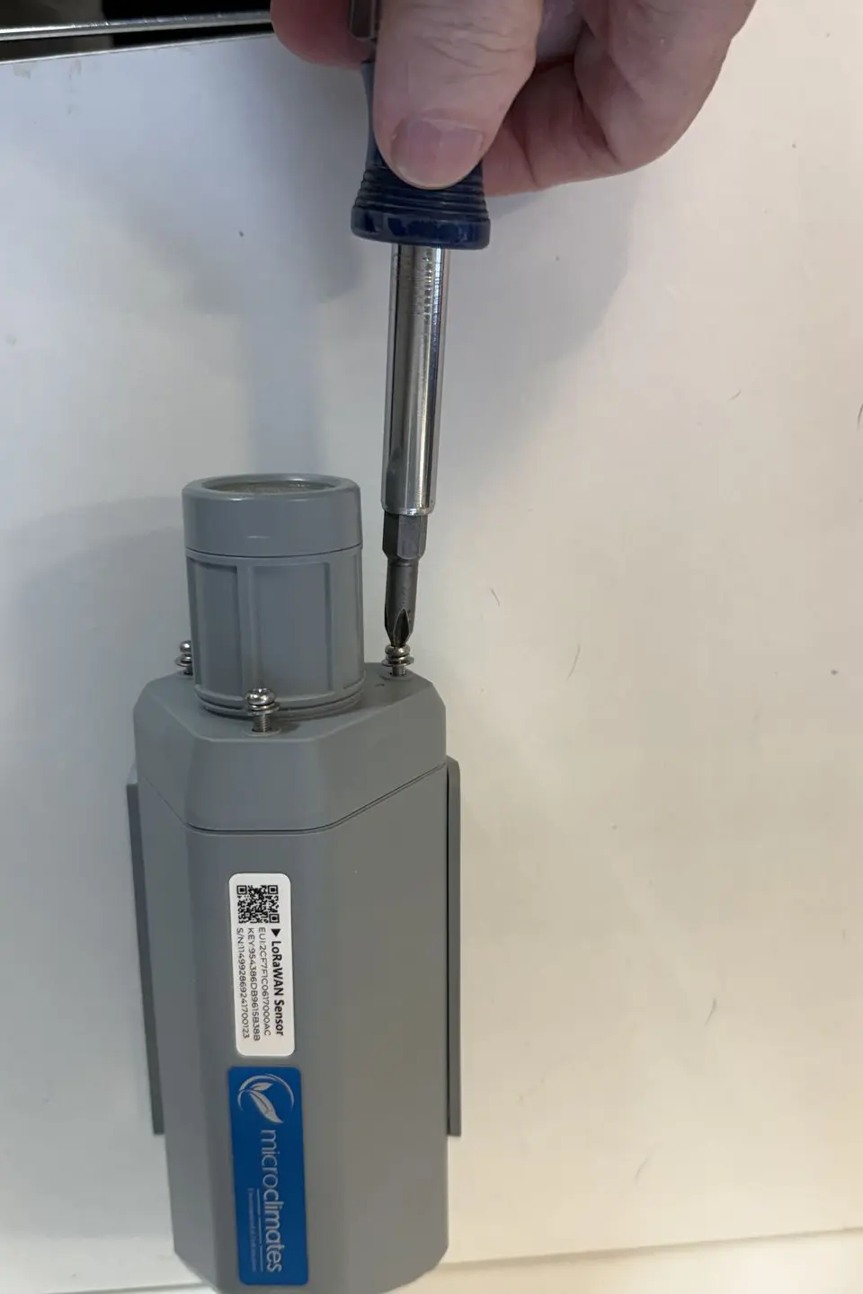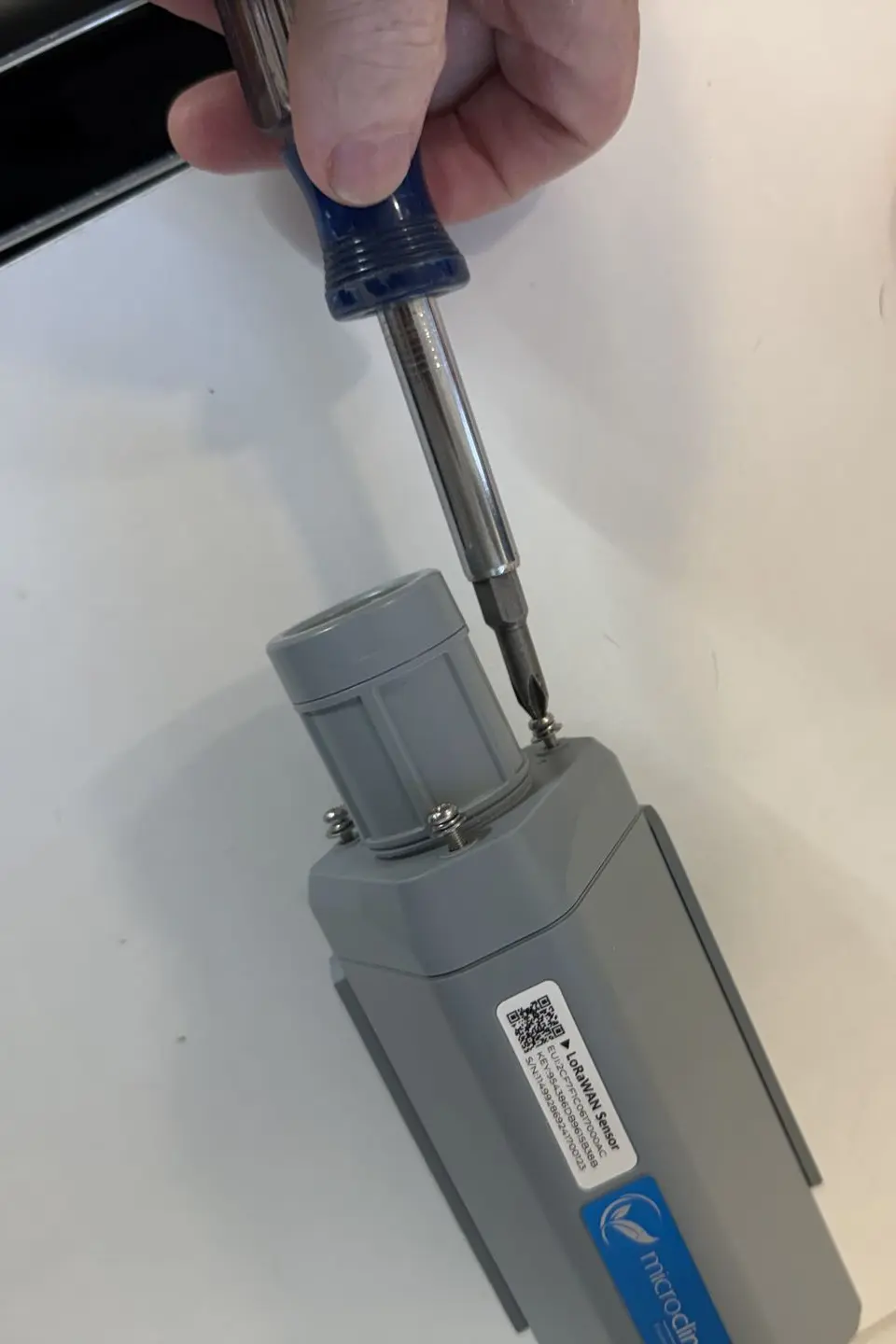 - Use your Phillips head screwdriver to unscrew the three screws connecting the cap to the casing of your sensor and carefully slide the device out of its casing.