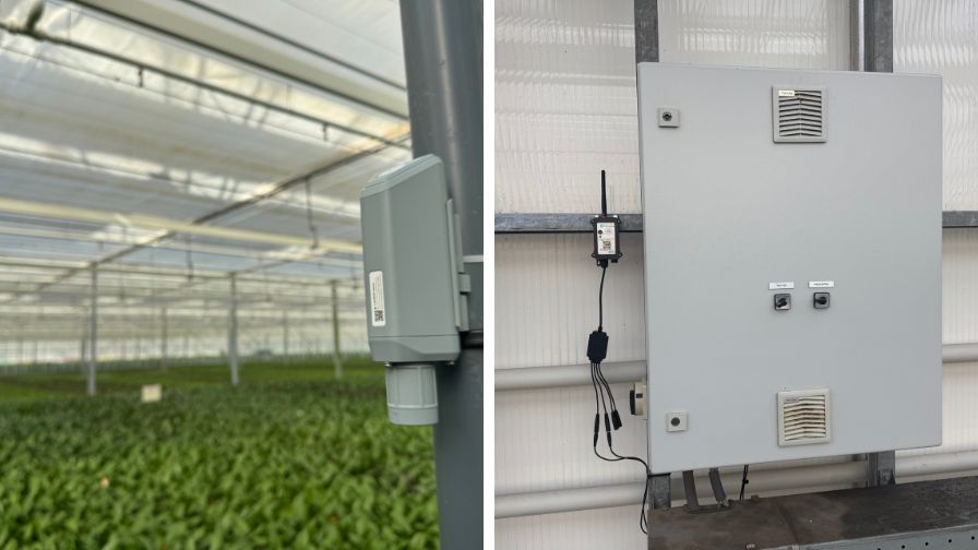Wireless sensors report conditions across more places in the greenhouse to complement data from existing climate control systems. Energy monitors report energy use from pumps and fans in real-time to the cloud where data is ready for viewing online from any location. | ERI with permission from Floricultura Pacific